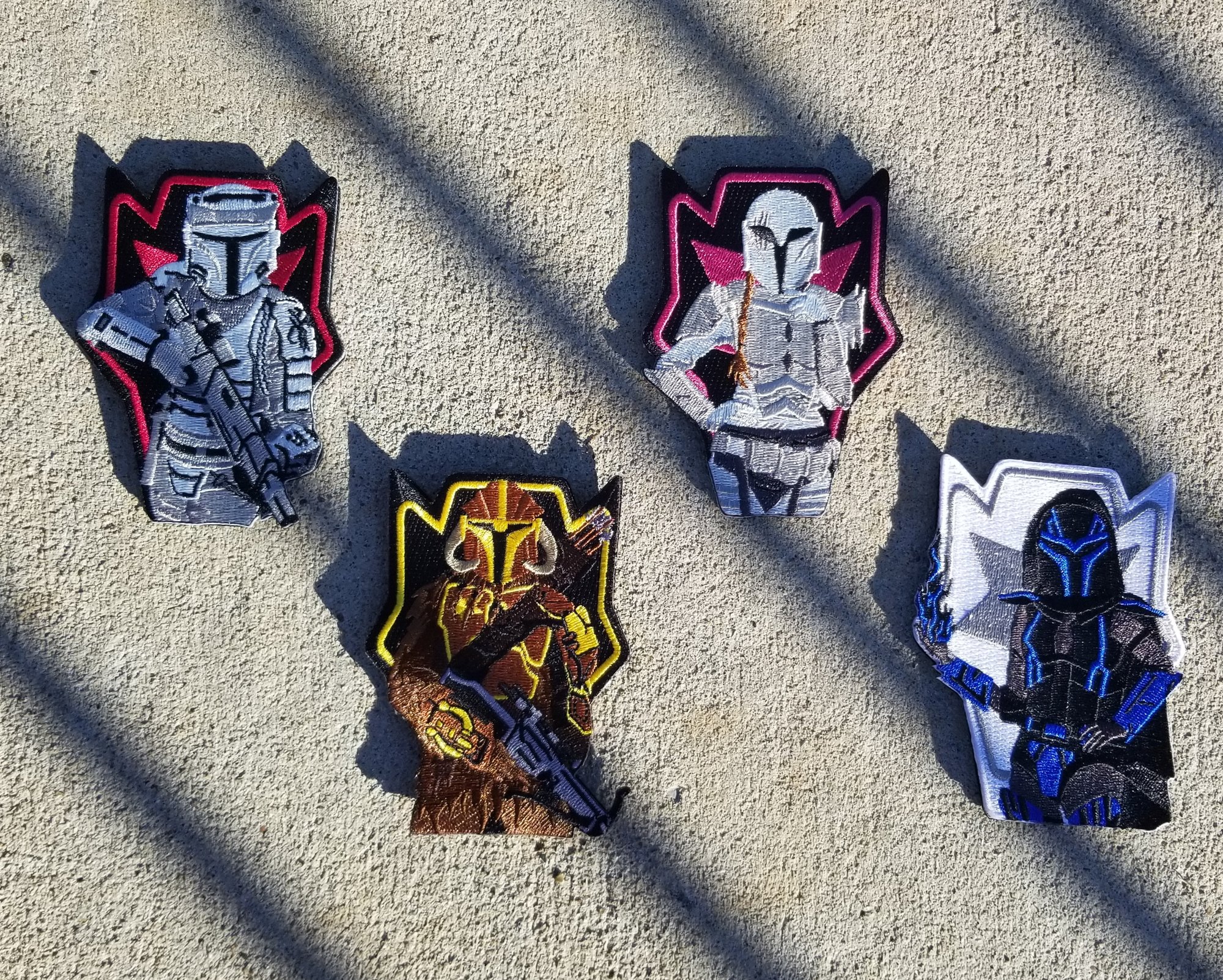 The Hunter, The Huntress, Wookie Mando Warrior, and Sky Mando