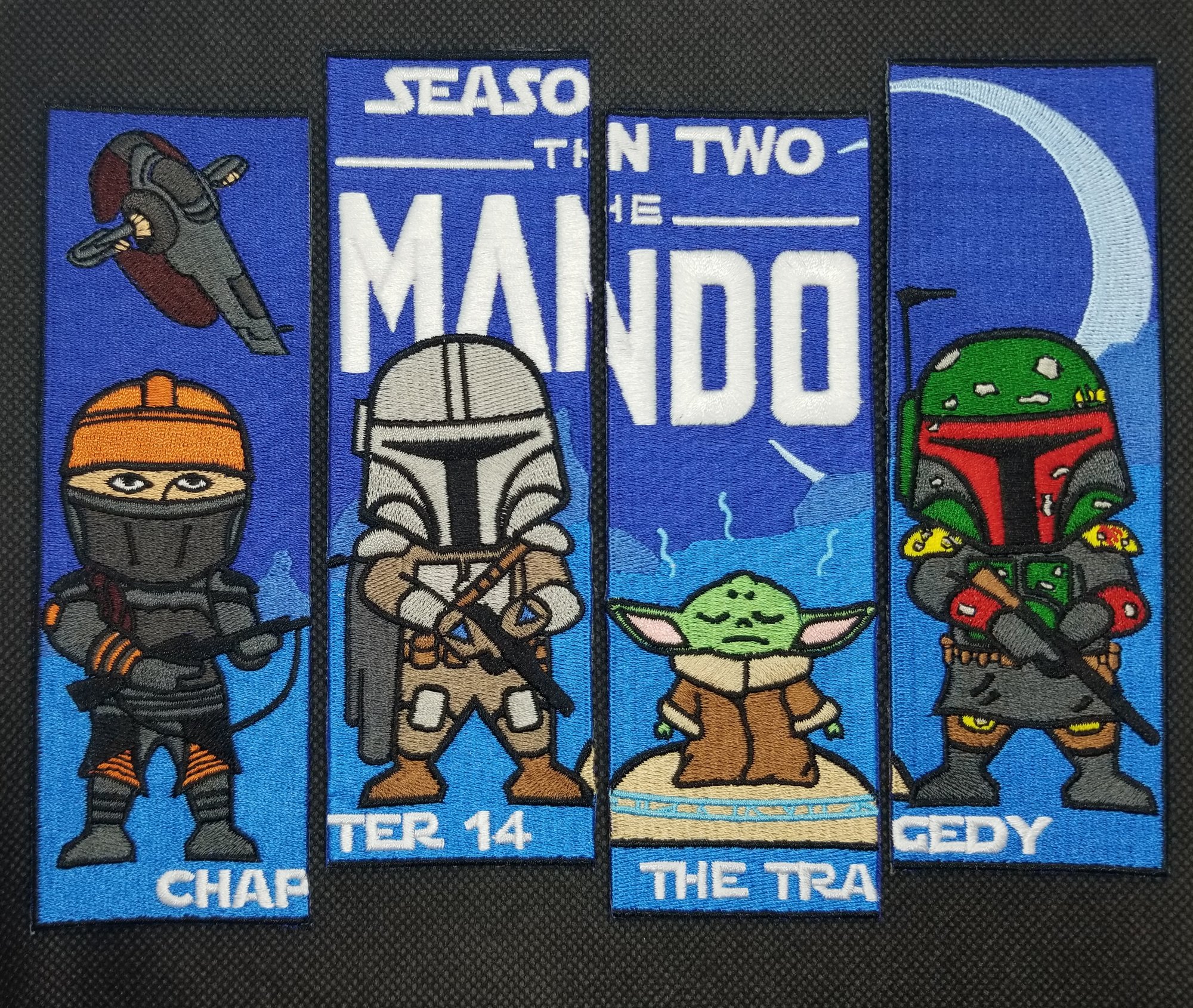 "Mando Season Two The Tragedy" 4-piece puzzle patch set.